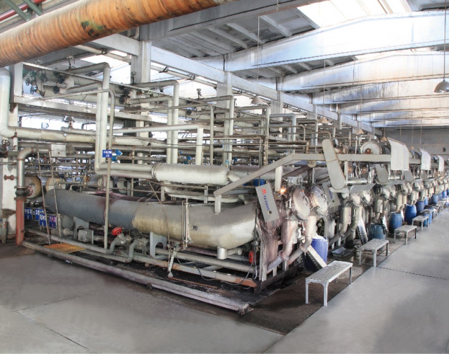 主要印染加工各類全棉、T/R、T/C及棉裘系列各種印花染色產品,有韓國進口定型機6臺、長車軋染線3條、配套前道蒸漂絲光